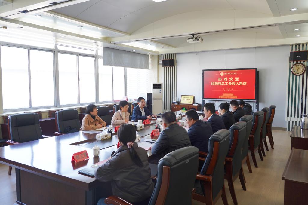 1月13日,临朐县人大常委会党组副书记、副主任、县总工会主席黄芳,县总工会党组书记、常务副主席郭栋一行,来校就临朐县机关事业单位工作人员急救知识培训项目开展交流洽谈。学校党委书记崔照忠出席活动,党委委员吴殿臣及相关院系、部门负责人出席此次会议。