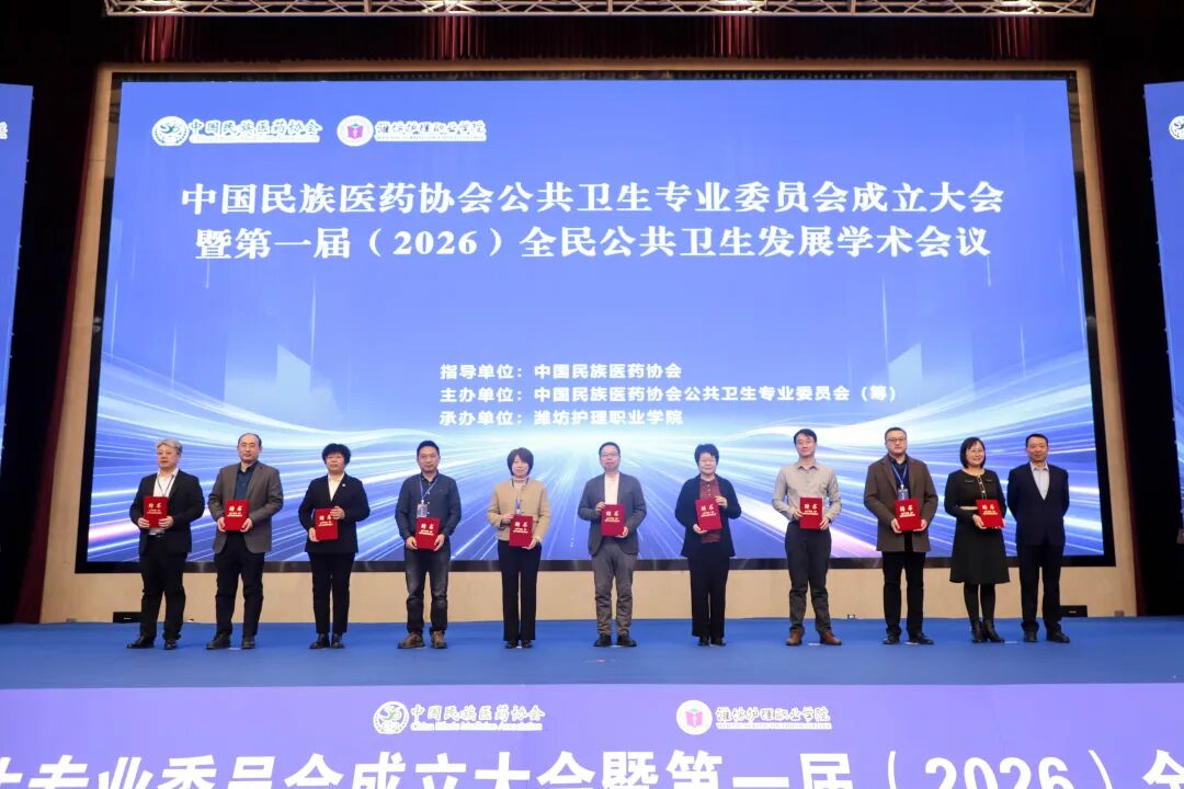 搭建协同发展新平台,书写卫生健康新篇章。1月24日,中国民族医药协会公共卫生专业委员会成立大会暨第一届(2026)全民公共卫生发展学术会议在潍坊护理职业学院成功举办。来自政府部门、医疗卫生机构、高等院校及相关单位的负责人,以及民族医药、公共卫生、预防医学等领域的顶尖专家学者、行业精英齐聚一堂,共话民族医药与公共卫生事业发展大计。