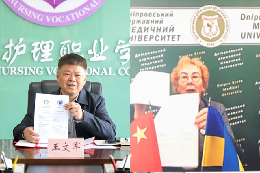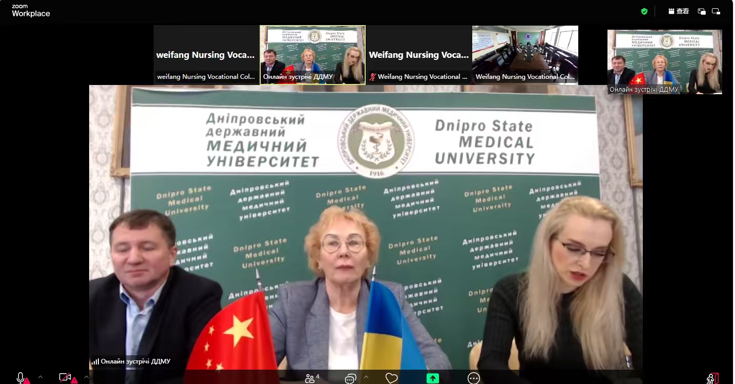潍坊护理职业学院与第聂伯国立医科大学领导线上合影