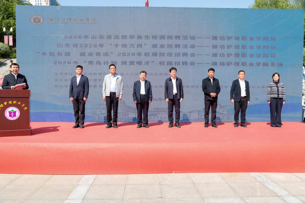 随后,与会领导与嘉宾共同为本次校园招聘会启幕,标志着潍坊护理职业学院2026年校园招聘活动正式开始。