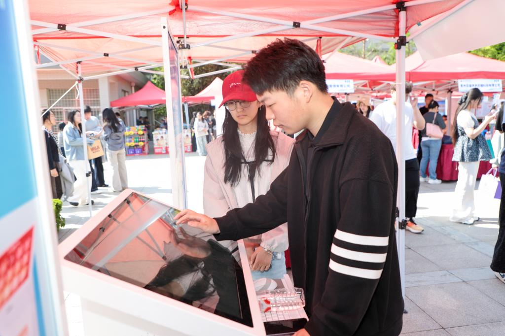 作为本次招聘会的亮点之一,学校联合专业机构在主会场打造集智能化、一站式、全流程于一体的AI数字就业服务区,投放人工智能简历一体机、落地式面试一体机、职业生涯规划测评一体机、就业指导综合服务机、就业赋能一体机五大智能设备,为学子免费提供生涯规划、简历优化、模拟面试、岗位匹配全链条智能服务。