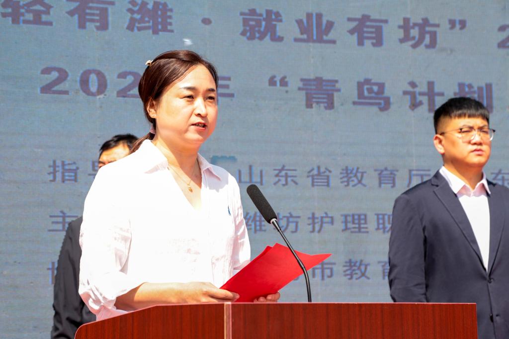 潍坊市公共就业和人才服务中心党委委员、副主任秦志伟,潍坊市产教融合研究院院长冯秀红,共青团潍坊市委副书记卢永波,潍坊护理职业学院党委书记崔照忠等领导出席活动。启动仪式由潍坊护理职业学院党委委员、副院长窦忠伟主持。