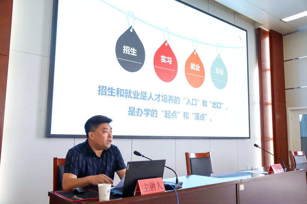 副院长窦忠伟作点评讲话。他强调,要坚持招生就业工作与市场、产业紧密结合,服务经济社会发展;要坚持就业“一把手”工程,不断完善全员抓就业、促就业工作机制;要积极搭建实习就业平台,拓宽“实习就业一体化”覆盖面,以高质量招生就业推动学院高质量发展。同时,他还从加强规范实习管理 ,推进招生与就业联动,抢抓就业关键期推进毕业生高质量充分就业等方面,对下一步工作做出安排部署。
