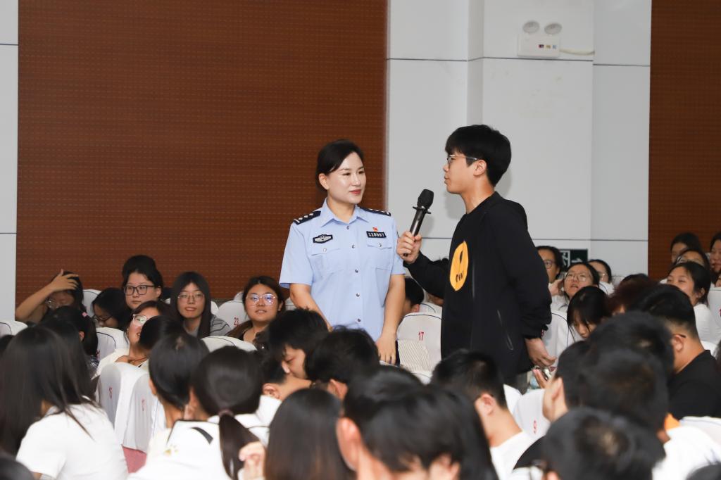 本次讲座以“护航青春校园无诈”为主题,聚焦新生初入校园、社会经验不足、易成为电信网络诈骗的目标人群等特点展开。高立平结合真实的校园诈骗案例,从诈骗分子的常用手段、识别诈骗的关键技巧,到遭遇诈骗后的应对方法,为同学们进行了全面细致的讲解。周杉重点讲述了“警惕不良‘校园贷’不负青春不负‘债’”和“珍爱信用记录,享受幸福人生”等内容,增强新生对“校园贷”防范意识。