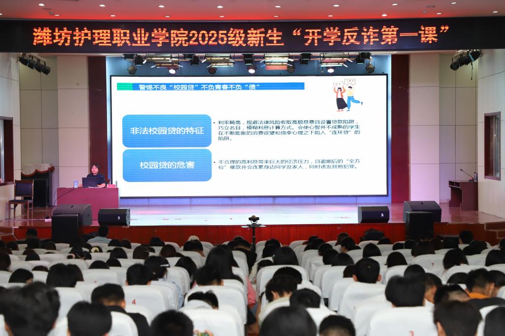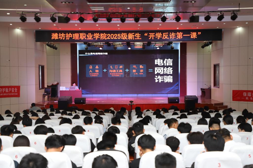 筑牢校园安全防线,守护美好青春,9月17日下午,一场别开生面的“开学反诈第一课”专题讲座在学院报告厅开讲,并通过同步转播覆盖三校区共计5000名2025级新生。