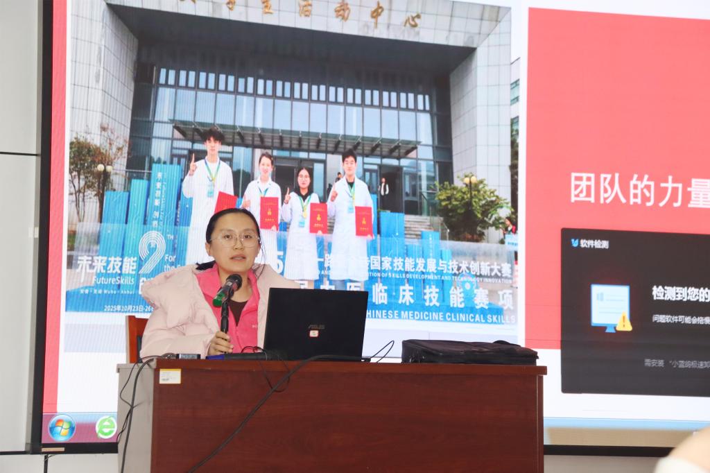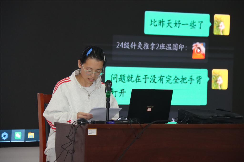 此次经验分享会不仅是对技能大赛成果的全面总结,更是对中医系育人成效的一次生动检验与集中展示。中医系主任郑硕表示,比赛不是终点,而是成长的起点。要坚持“以赛促学、以赛促教、以赛促改”,让竞赛成为推动教学改革、提升人才培养质量的重要抓手。下一步,中医系将继续秉持“传承精华、守正创新”的理念,常态化开展赛事经验交流、技能提升集训系列活动,进一步完善“教—学—练—赛”一体化培养机制。通过经验传承、思想碰撞激活育人活力,让精益求精的中医药匠心精神薪火相传。同时,将以竞赛为契机,进一步深化中医临床技能教学改革,强化实践育人环节,持续优化人才培养方案,着力培养更多高素质、创新型中医药技术技能人才,助力学子在中医药传承与创新的道路上坚定逐梦、行稳致远,为中医药事业高质量发展注入源源不断的青春力量。